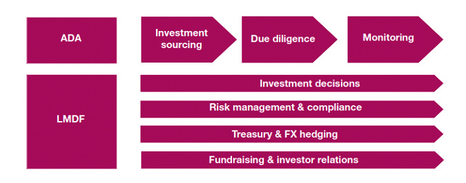 ADA has a team solely dedicated to LMDF, but it is also more than just an investment adviser. ADA is active in the development of MFIs through innovation, capacity building and peer to peer learning, as well as sector level interventions that address regulatory or legal frameworks. It also has specific expertise in Western Africa. ADA’s work as an investment adviser benefits from synergies through the information and networks the other activities create.