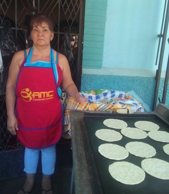 Après un certain temps, elle a décidé de se lancer dans une deuxième activité, celle des tortillas. Au début, elle utilisait du bois pour chauffer les 30 kilos de maïs quotidiens et ceux-ci ont rapidement évolué vers un total de 75 kilos. Maria a même du employer une deuxième personne afin de faire face à la demande croissante. Cette évolution lui a permis d’acheter une cuisinière à gaz, en accédant à une aide financière supplémentaire d’AMC.