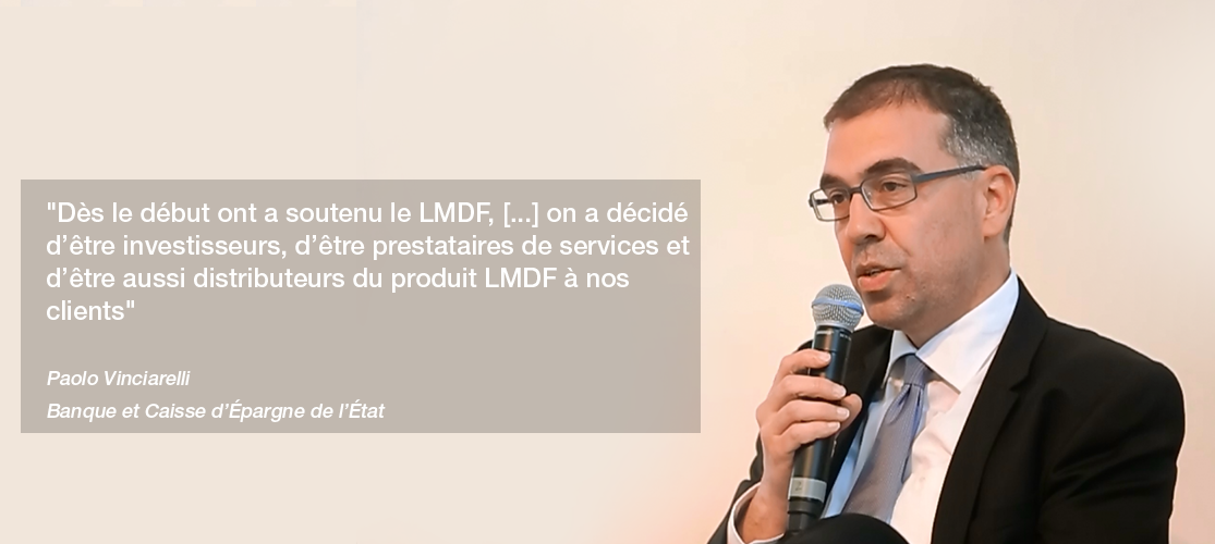 LMDF a été soutenu par une série d’acteurs importants du secteur financiers depuis ses débuts en 2009. Le Fonds compte parmi ses partenaires fondateurs la BIL, la BGL BNP Paribas, la BCEE, la Banque de Luxembourg, CBP Quilvest, la Banque Fortuna, Le Foyer and La Luxembourgeoise.