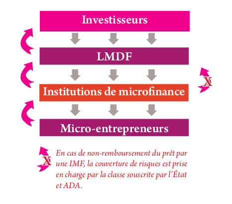 Comme particularité, un investissement dans les actions de la Classe C (classe ouverte aux particuliers et aux structures à but non lucratif) bénéficie d’un mécanisme de protection des risques. Si une institution de microfinance ne rembourse pas le LMDF, les investisseurs de la Classe C sont protégés par une première absorption de pertes à travers les actions de la Classe A souscrite par le gouvernement luxembourgeois et de la Classe Abis  souscrite par ADA.